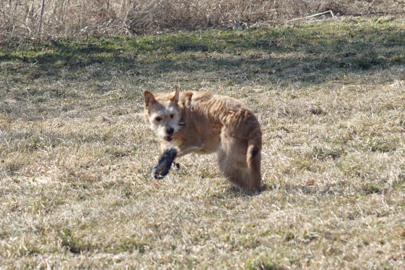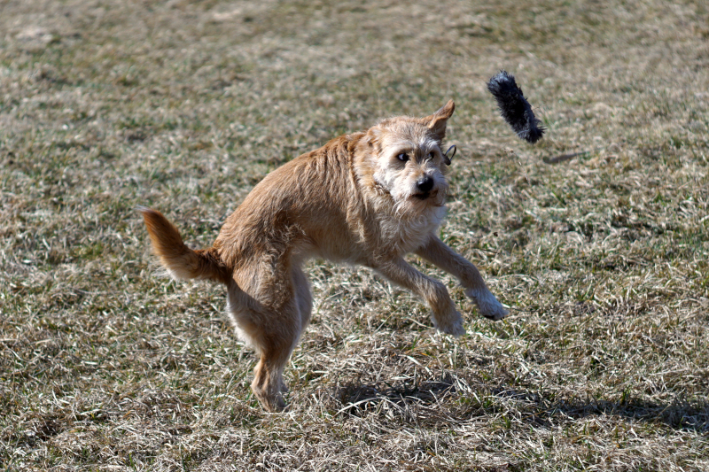 Nasza zabawa wygląda bardzo prosto: rzucam, ona łapie, zaczyna „mordować” zdobycz – potrząsa nią, podrzuca, przytrzymuje, czasem chwilę z nią pobiega. W pewnym momencie „ofiara umiera”, a ona ją zostawia, dając mi przestrzeń do kolejnego rzutu. I tak przez chwilę się bawimy.