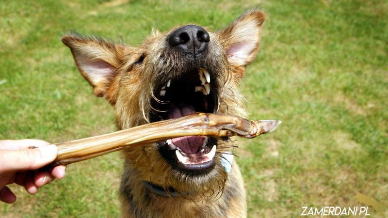 - pies traci koncentrację i skupia się wyłącznie na jedzeniu (i zbieraniu zmaczków)