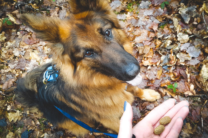 Choć oczywiście zdarzają się wyjątki. Idealnym przykładem był mój owczarek Donner, który potrafił liczyć do trzech i domagać się dokładnie takiej liczby nagród, ile osób minęliśmy w spokoju. Ale to był bardzo specyficzny pies. Natomiast zdecydowana większość psów nie liczy ile smaczków wzięło Wam się w garść. Liczy się sam fakt, że mogą je dostać.