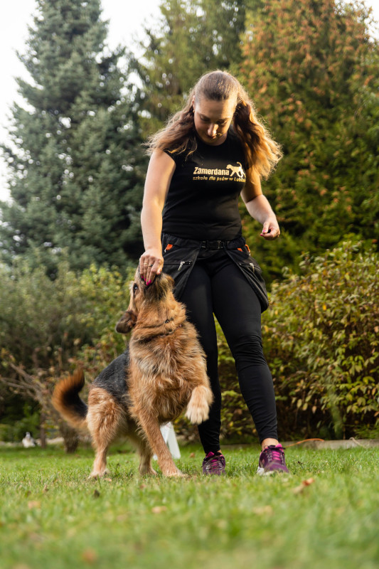 Oczywiście, najczęściej pracujemy na jedzeniu. To najprostsza forma nagrody, szczególnie dla początkujących opiekunów, a przy tym bardzo precyzyjna i czytelna dla psa.