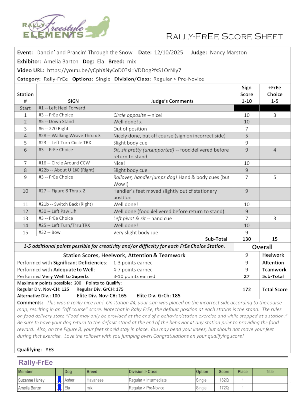 Chyba moim największym sukcesem było jednak przygotowanie Elzy (a teraz stopniowe przygotowanie Twinsów) do zawodów Rally Freestyle Elements (RallyFrEe). Wymagało to od nas ogromu pracy, cierpliwości i wywrócenia wszystkiego, co umiemy, do góry nogami – co było bardzo trudne dla dziewięcio i pół letniej Eli, ale podołałyśmy temu.