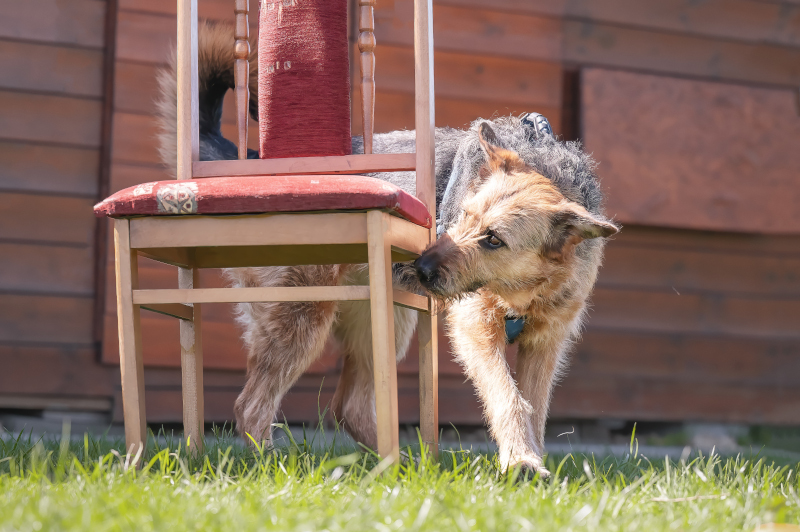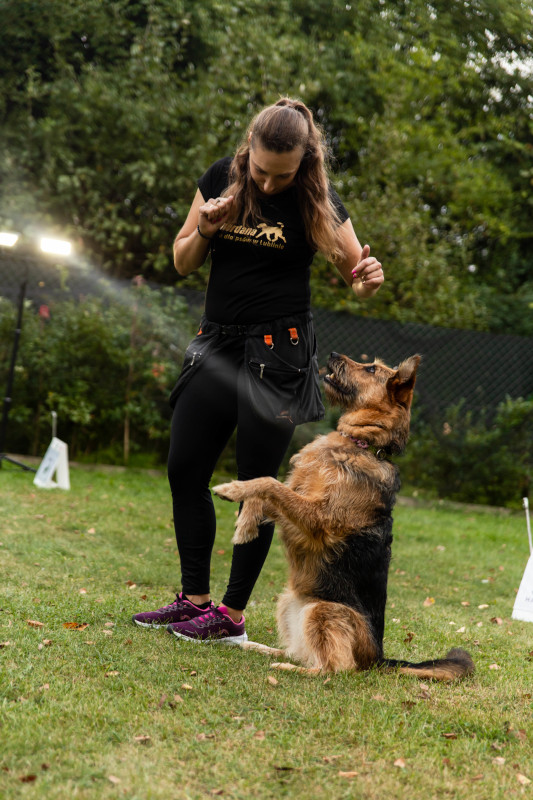 Po pierwsze, bo w pracy z moimi psami bardzo dużo bazuję na gestach i komunikacji optycznej. W RallyFrEe najmniejsza wskazówka dłonią lub ciałem jest uznawana za błąd i bezwzględnie tnie punkty. Musiałyśmy więc nauczyć się 32 ćwiczeń i sztuczek wyłącznie na komendy słowne oraz opracować własne 4 Free Choice – unikalne sztuczki. Co więcej, przez całe życie Elza pracowała przy lewej nodze, a tu musiałyśmy nauczyć się pracy zarówno przy nodze lewej, jak i prawej.